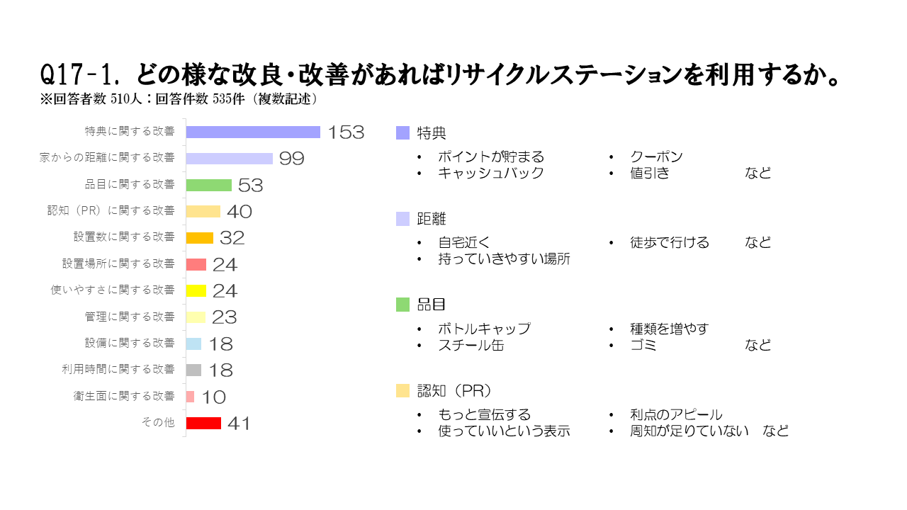 それを裏付けるような結果が、ゴミ回収と比べたリサイクルステーションの優位性に関する質問の回答にありました。