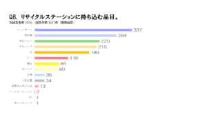 一方でリサイクルステーションを回答者のうち63.6%の方が利用しており、その頻度について質問すると1か月以内に複数回利用する人が50%以上、週1回以上という人も30%いらっしゃいます。これだけの方がリサイクルステーションを利用してくださっているのです。利用理由で一番回答の多かった、まさに「買い物ついで」に捨てられるという利便性が大きな要因でしょう。