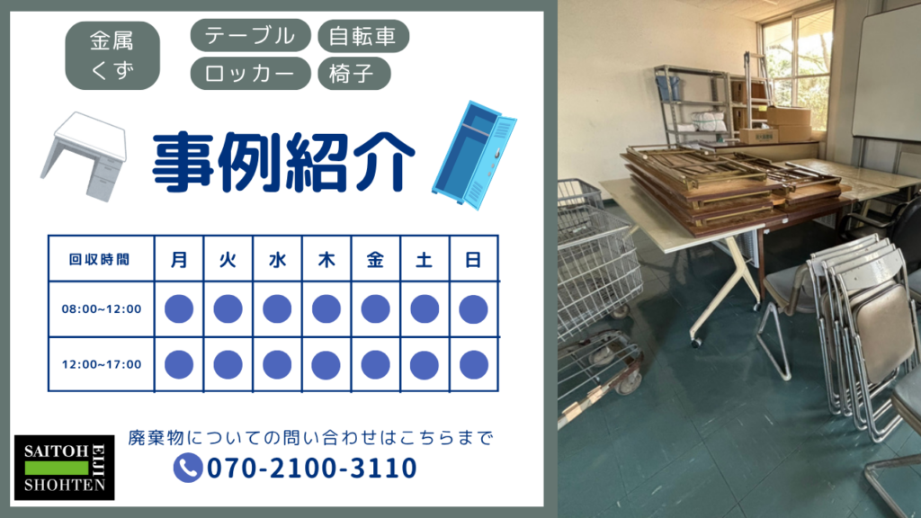 事務所の改装に伴い、保管されていた什器や不用品を一括で処分したいとのご相談をいただき、回収に伺いました。