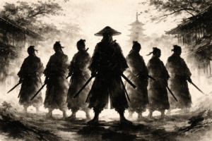 挿絵1:シルエット・墨絵風・江戸時代・7人程度で何かの組織