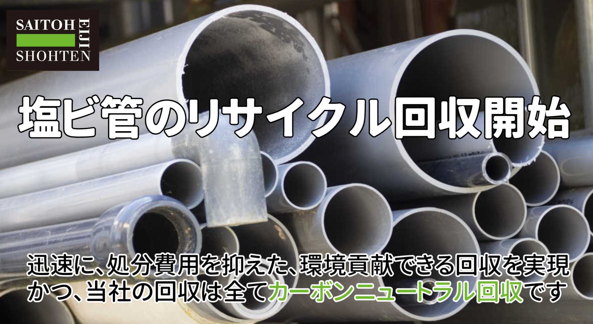株式会社斎藤英次商店(本社:千葉県柏市、代表取締役社長:斎藤大介)は環境貢献および脱炭素社会に向けた新たな取り組みとして、顧客の声から生まれた新たな回収サービス『塩ビ管リサイクル回収』を開始いたしました。